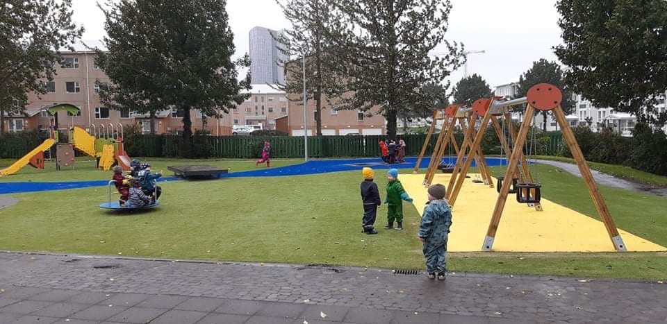 Mikil gleði ríkti í Stóra Læk á dögunum þar sem búið er að opna nýja leiksvæðið okkar.
