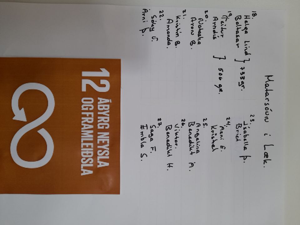 Börnin ætla að vigta matarafganga í Stóra Læk og sjá hversu mikil sóun er hjá okkur í leikskólanum. Til hliðsjónar eru þessi atriði úr 12.greininni.